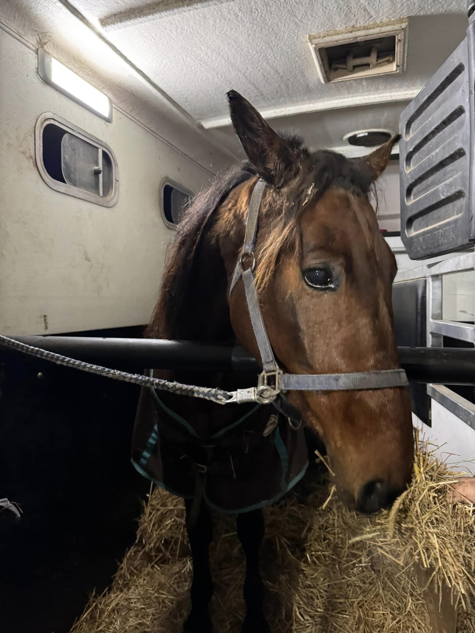 Er war im Transporter und anfangs in der Box ein wenig durch den Wind. Dann hat er sich aber überraschend schnell wieder gefangen.